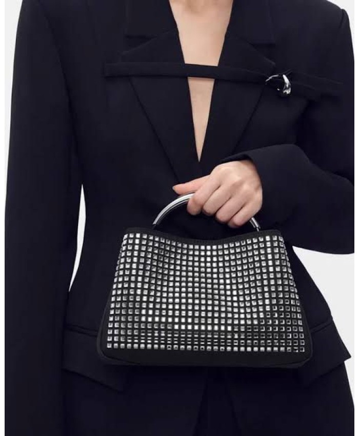 This is the Pedro Lia Handbag, a stylish party purse characterized by its structured silhouette and shimmering rhinestone embellishments.